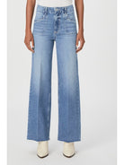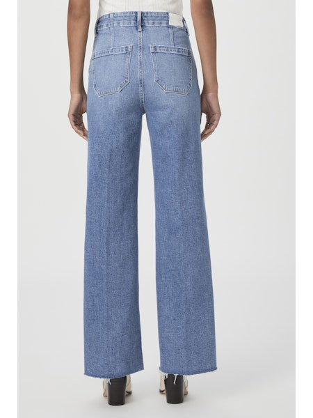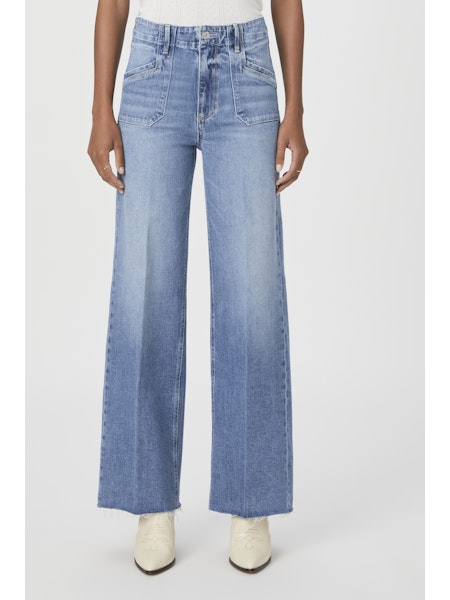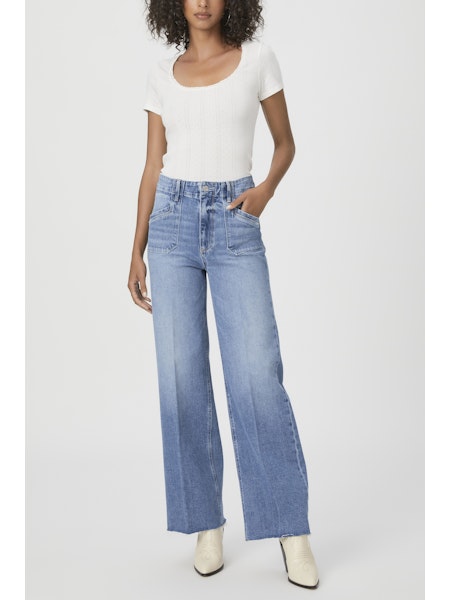 This modern high-waisted wide leg has an easy, relaxed fit with a 31" inseam, welt utility pockets, and a raw hem. Cut from our TRANSCEND VINTAGE denim in a perfectly worn-in light wash with natural fading, this style has the look of authentic vintage denim but is incredibly comfortable with plenty of stretch and recovery.