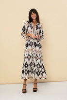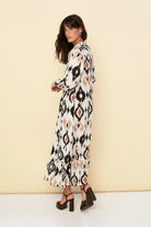 Printed long shirt dress, made of cotton viscose slub which gives the perfect fluidity to the dress