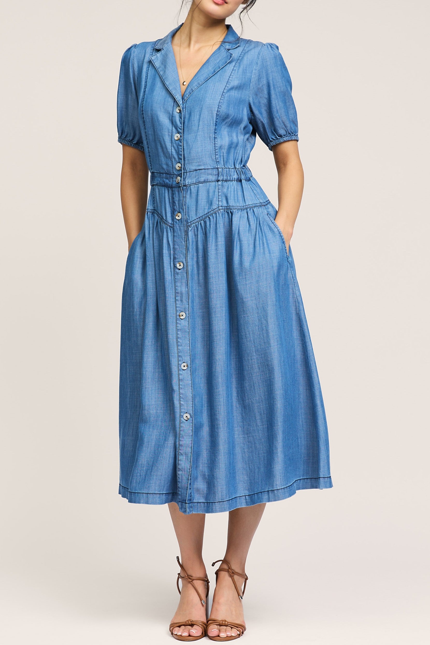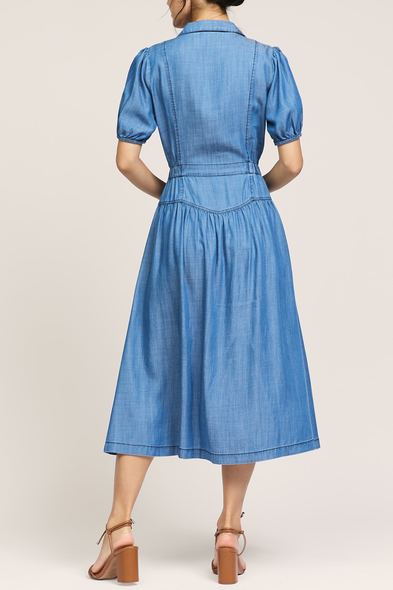 - HALF SLEEVE MIDI DRESS WITH SKIRT YOKE DETAIL