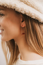 An easy-to-wear elegant drop earring. With a tubular black Onyx bead, put these on to elevate and stimulate your creative focus. Tarnish Free - Long lasting protective coating safeguarding your jewelry from sweat, water, and more. 18K gold plating over brass Hypoallergenic – Lead Free Carnelian Agate Gemstone Bead The gemstone bead measures 13mm x 4mm Earring height 33mm Natural stones will show variation in tones and color; no two are alike.
