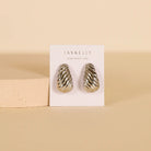 This statement hoop earring features distinct ridges, and a bold fluted drop.