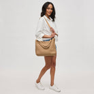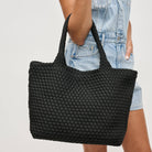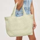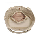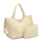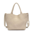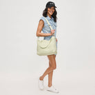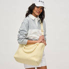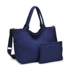 Elevate your style sustainably with the Sky's The Limit - Medium Tote. Expertly crafted from recycled materials, this tote combines elegance with eco-conscious design. Perfect for work, travel, or everyday adventures, it offers ample space and includes a matching pouch to keep essentials organized. The lightweight yet durable construction ensures comfort, while its detachable strap allows for versatile wear as a crossbody or over-the-shoulder. This timeless tote is a practical, stylish choice for those seeking fashion-forward functionality and a commitment to sustainability. Make a statement and reduce your footprint with this chic, planet-friendly accessory. *Item Type: Tote *Material: Polyester *Closure: Snap *Exterior Details: Woven, Handle Drop 7", Adjustable/ detachable shoulder strap 18"-29" *Interior Details: Open compartment, removeable zipper pouch *Adjustable/ detachable shoulder strap 18"-29"