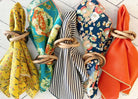 Three ring wooden napkin rings. Light weight, wooden napkin rings that look great with all napkins. Sold in a set of FOUR