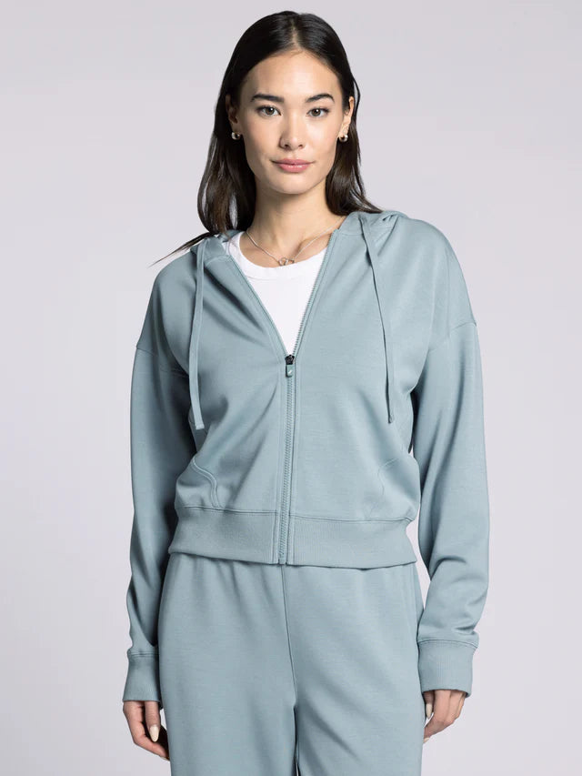 This so-soft hoodie is perfect to throw on, featured with an attached 3 panel hoodie, zip front closure and side pockets.