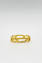Make a statement with our Chain Link Ring, a modern take on timeless edge. This piece features interlocking open links. Crafted with a gold plated finish, this timeless piece is perfect worn solo or stacked alongside your favorite ring stack.