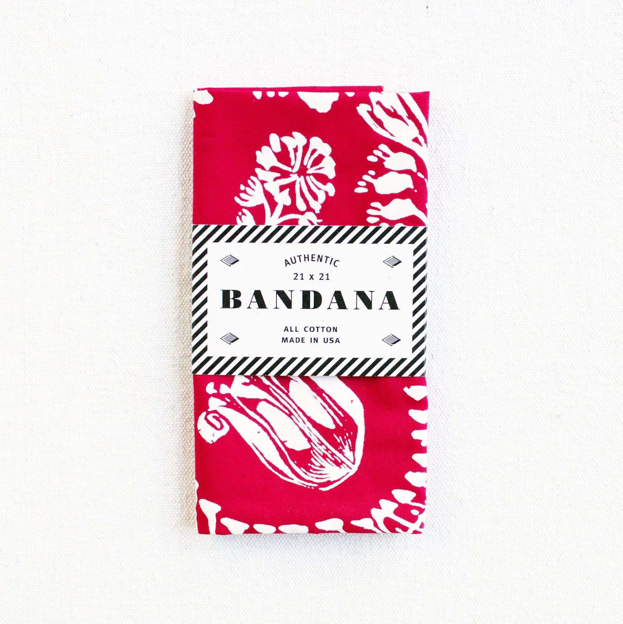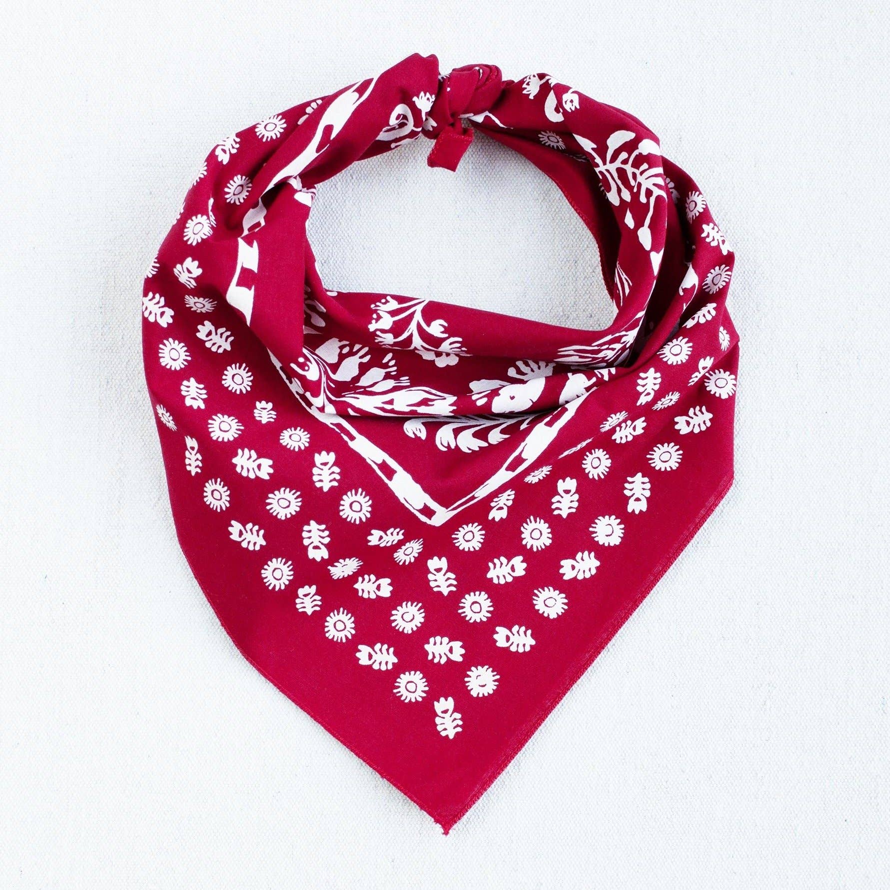 If you’re looking for a bohemian vibe, take a look at our floral bandana. Featuring inspiration from antique Bohemian textiles, this unique bandana offers a loose floral print. Perfect for use as a head bandana, a neckerchief, or to keep in your pocket as a handy kerchief or napkin.