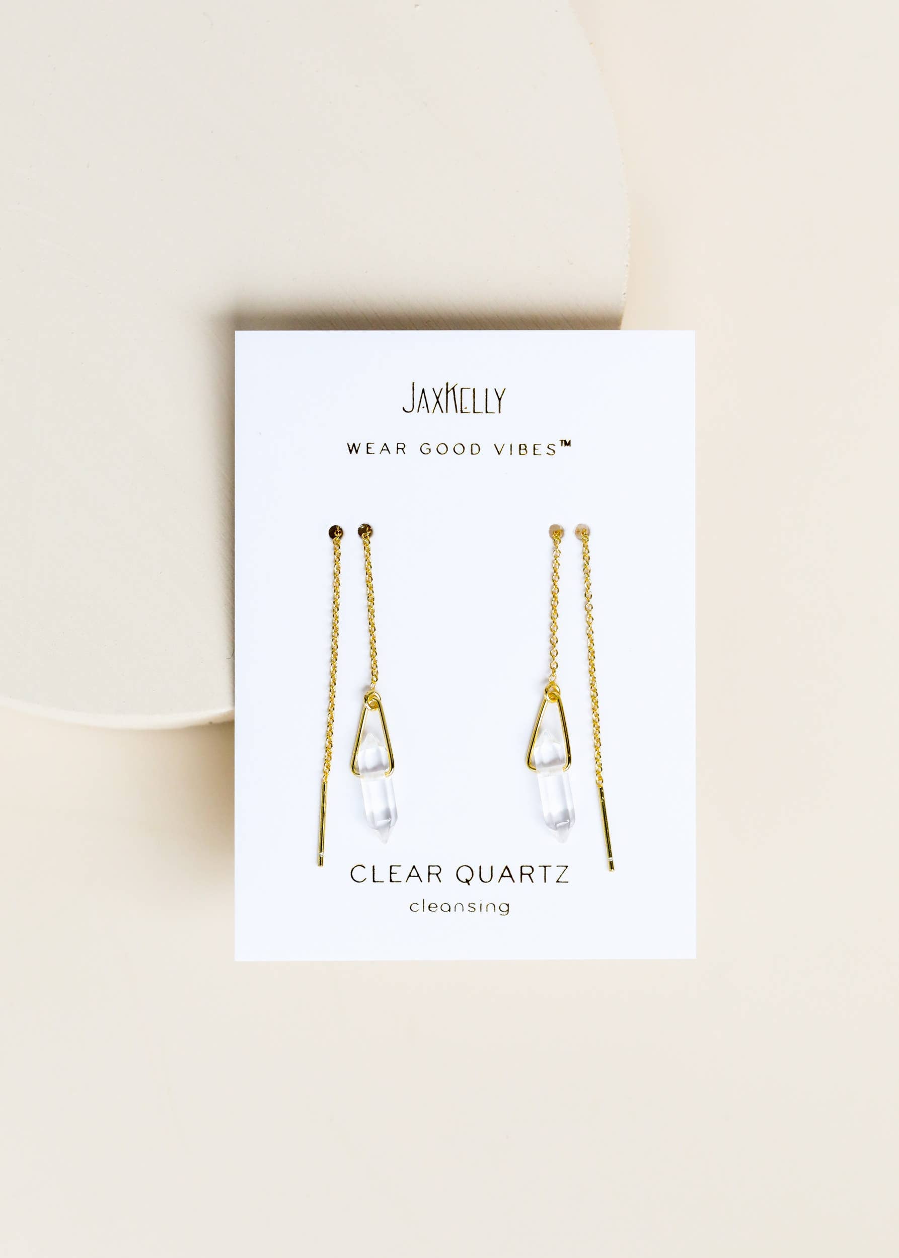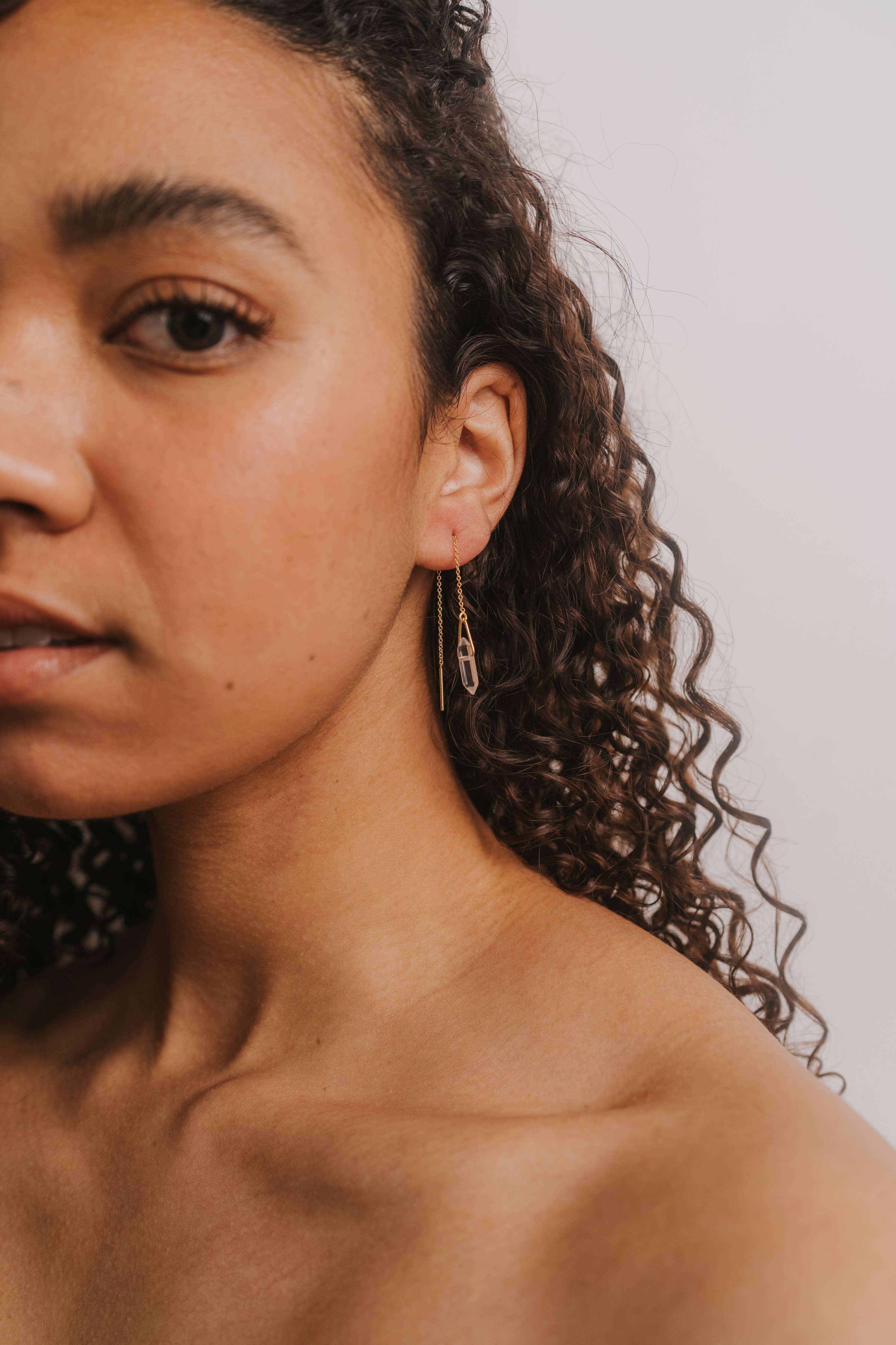 Our threaders feature a double-pointed gemstone attached to a triangular setting and delicate chain. Thread the chain midway through your ear and let the gemstone dangle.