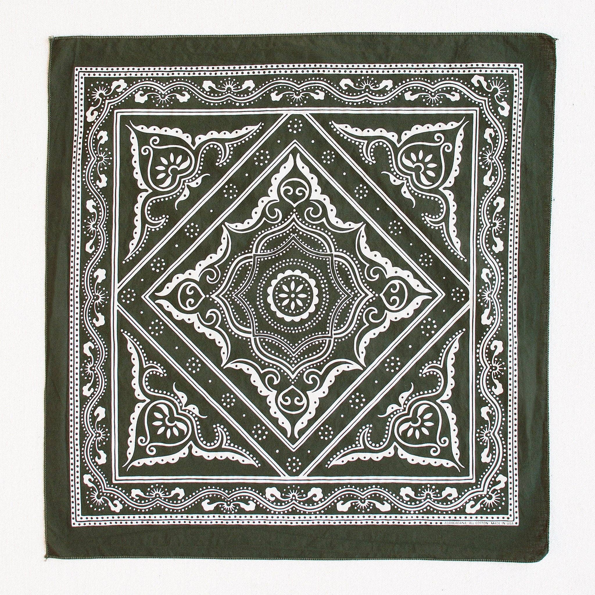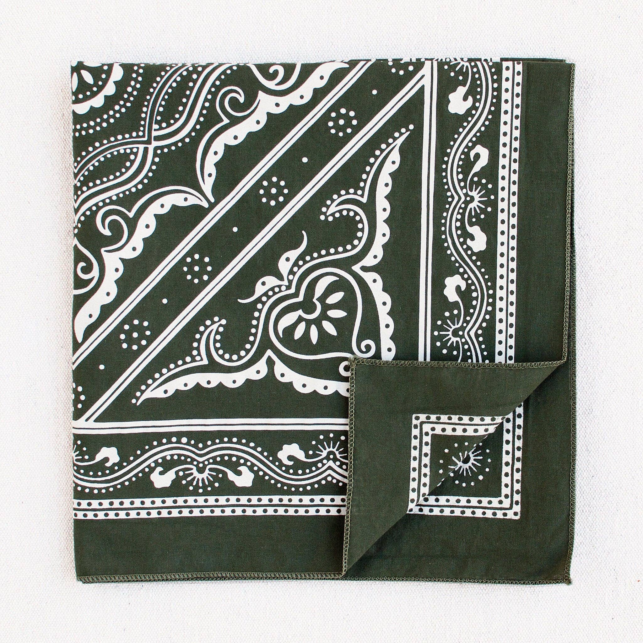 Made from tightly woven, 100% cotton quilting fabric with a rolled hem. • Hand screen printed with a soft print that's 'in' vs. 'on' the fabric, won't wash out or fade. • Pre-washed and pressed, these bandanas become softer after each trip through the laundry. • Measures approximately 21” x 21”, or 53 x 53 cm. • Made in USA.